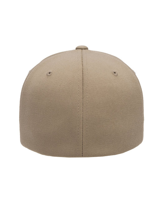 83% acrylic; 15% wool; 2% spandex; 6-panel; structured; mid-profile; eight-row stitching on bill; 3½" crown ; hard buckram backed front panels; sewn eyelets; spandex sweatband retains shape; Silver underbill;