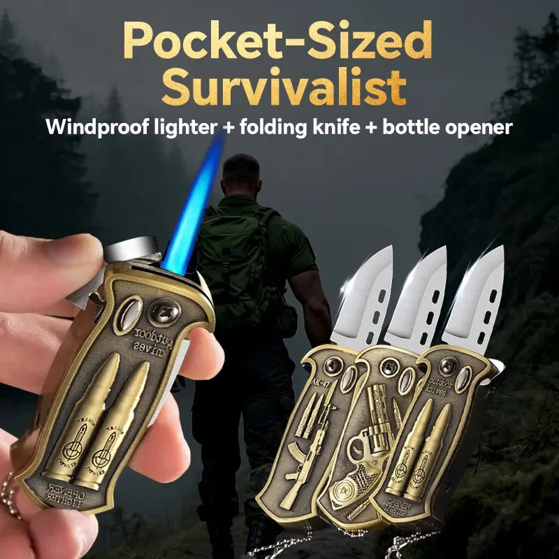 3-in-1 Tactical Lighter – Butane Lighter + Bottle Opener + Emergency Tool (Perfect Survival Gift for Men)