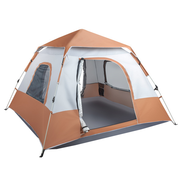 240*240*150cm Spring Quick Opening Four-Person Family Tent Camping Tent Brown