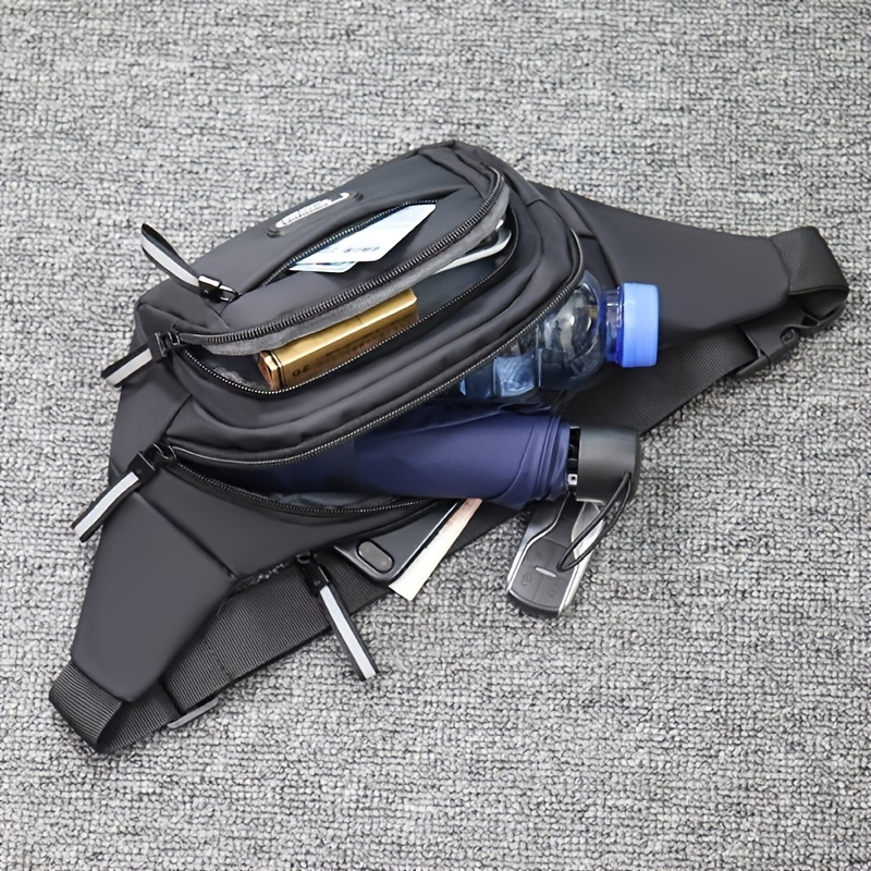 Black High-capacity Fanny Pack; Male Outdoor Sports Fashion Mobile Phone Bag; Waterproof Running Cross-body Business Purse; Waist Bag