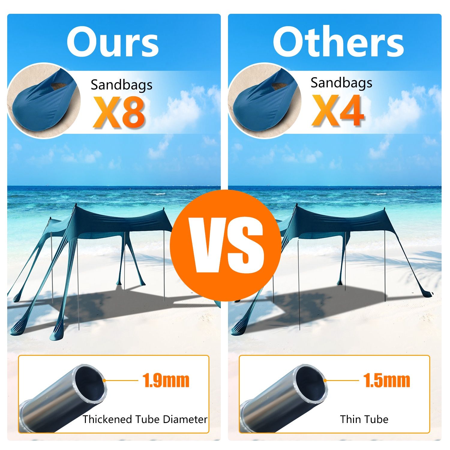 *Stable Windproof Design*:Thickened rustproof aluminum poles offer great stability and security without worrying about bending or collapsing. Additionally,8 large sandbags and ground stakes enhance durability and achieve well balance of internal stress distribution,ensuring this beach canopy tent stands firmly even in windy weather.