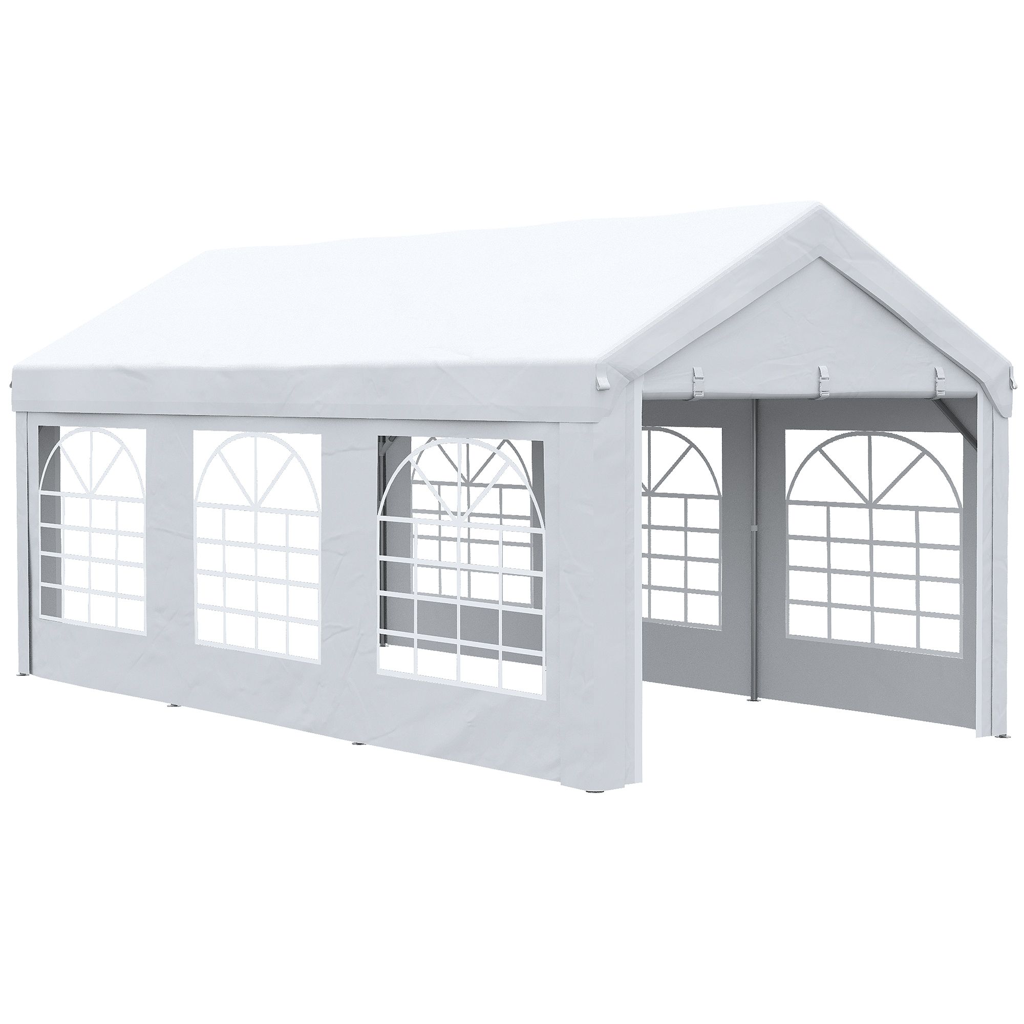 Outsunny's 10' x 20' carport and party tent can protect your project car and transform any outdoor area into a unique event space. Excellent for wedding receptions, graduation parties, or extra-large barbeques, it offers six stylish cathedral-esque windows. Excellent for small-to-medium cars, boats, furniture, and tools, it stops sun damage and sunburns alike. Made of a galvanized steel frame selected to withstand warping, Outsunny's canopy tent provides portable protection.
