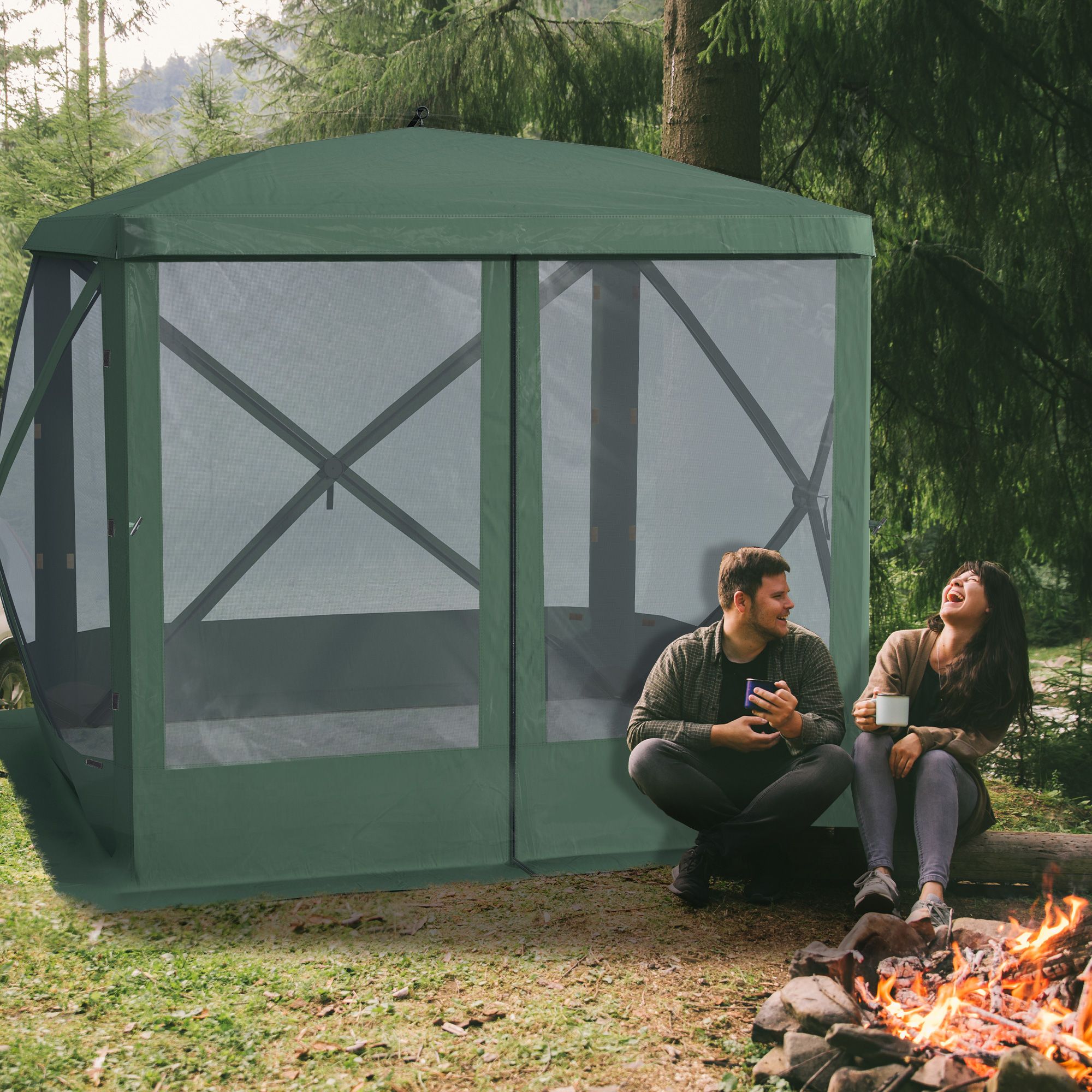 Accommodate yourself and others comfortably while camping at festivals, during picnics, and more with this screen house for camping from Outsunny. With 210D polyester cloth and flexible fiberglass poles, the steel ground stakes and solid guy ropes help to keep the mesh tent stable and secure on the ground. Finished with mesh sidewalls for increased ventilation, our outdoor camping house allows you to stay comfortable no matter where you are.