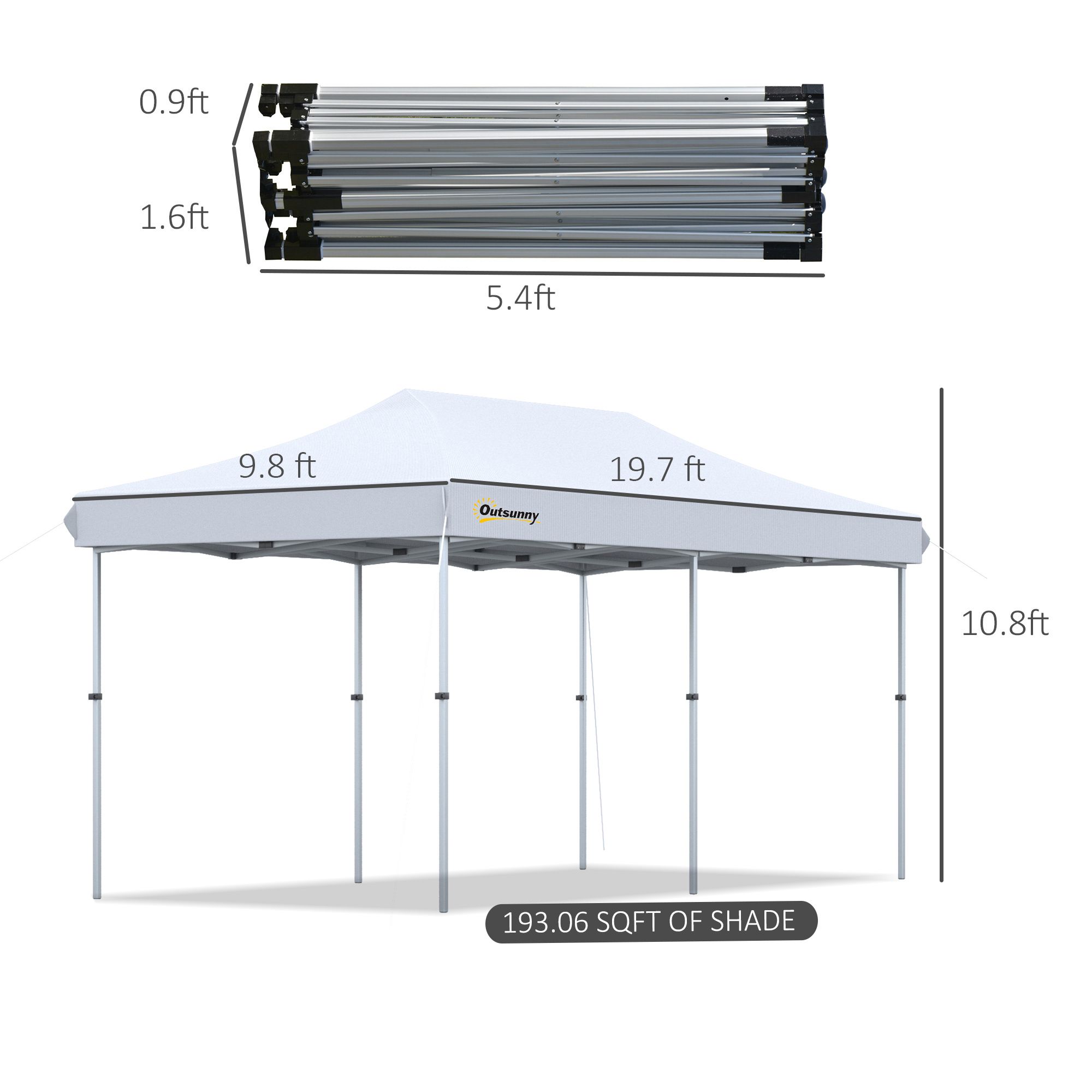 Check out this Outsunny folding hot tent, a great choice for outdoor parties, gatherings, events, and sports! Made of Oxford that protects you from UV rays, the 19.7' x 9.8' large adjustable gazebo provides plenty of shelter for you. The all-aluminum frame of this canopy tent is anti-rust. Include guy ropes and ground stakes as well, to keep everything in place while using. This instant canopy comes with a storage bag too.